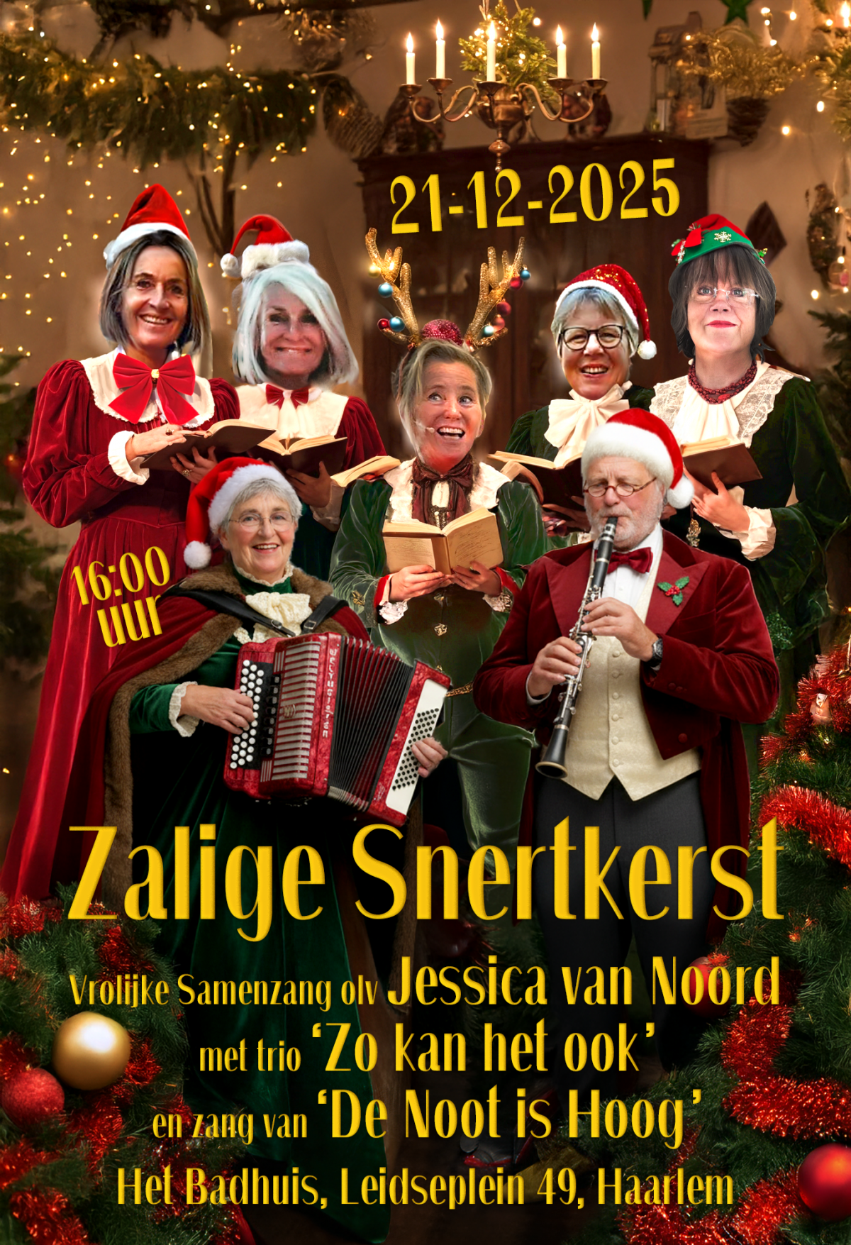 Deze kerst kan niet meer stuk want Jessica van Noord (zang, gitaar) komt naar het Badhuis met Jozeph en Tineke Vlaar op klarinet en accordeon. Zij vormen een pas geboren vrolijk trio met de naam: 'Zo kan het ook!' En zij worden bijgestaan door de zang vriendinnen van 'de Noot is Hoog' ter verhoging van de feestvreugde. Het wordt een gezellige, saamhorige samenzang voor alle gezindten met bekende en onbekende kerstklassiekers. U hoeft alleen maar een leuke kerstmuts op te zetten en mee te zingen. Dit alles vindt plaats in het sfeervolle Badhuis op 21 december aanvang 16.00 uur en na afloop is er heerlijke snert, tegen een kleine vergoeding. Zaliger kan de kerst niet worden. En niet duur. Want een bijdrage in de hoge hoed is helemaal goed.